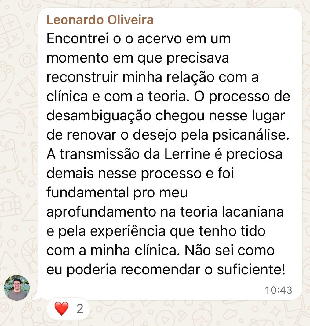 Descrição: Esta aula foi ministrada pelo psicanalista e supervisor lacaniano Humberto Júnior, que em 2024 se aproximou da Lerrine e dos membros do Acervo com o objetivo de apoiar os analistas que estão no início da clínica.